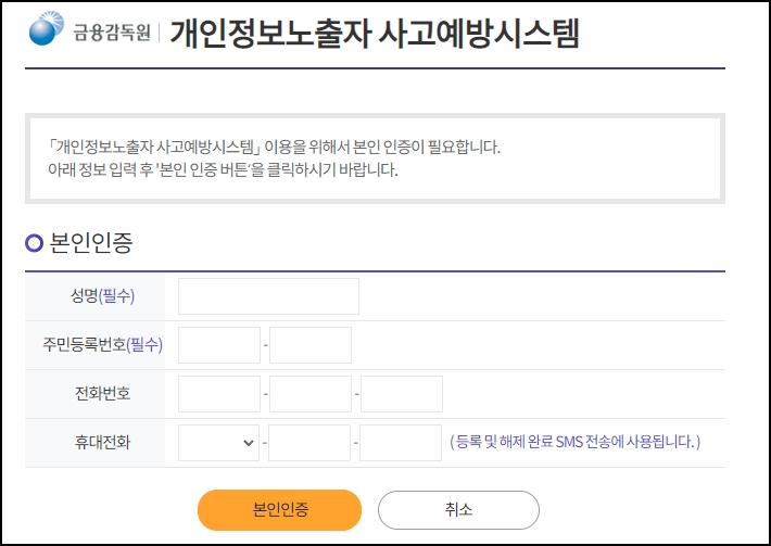 명의를 도용한 금융거래사고를 예방할 목적으로 운영되고 있어서