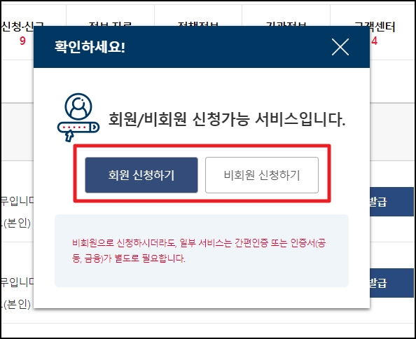 회원으로 로그인을 할 수 도 있지만 회원가입을 하지 않고도 발급 가능합니다.