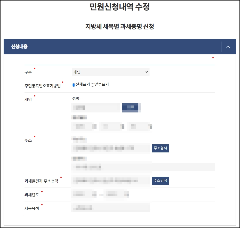 지방세 세목별 과세증명서 발급을 온라인으로