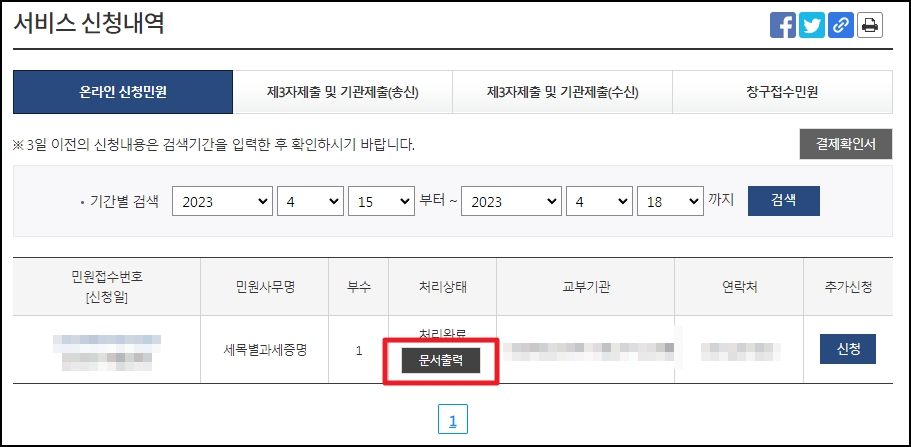 지방세 세목별 과세증명서 발급이 완료 됩니다.
